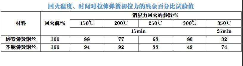 消應(yīng)力回火的溫度和保溫時間對拉伸彈簧的初拉力的影響: