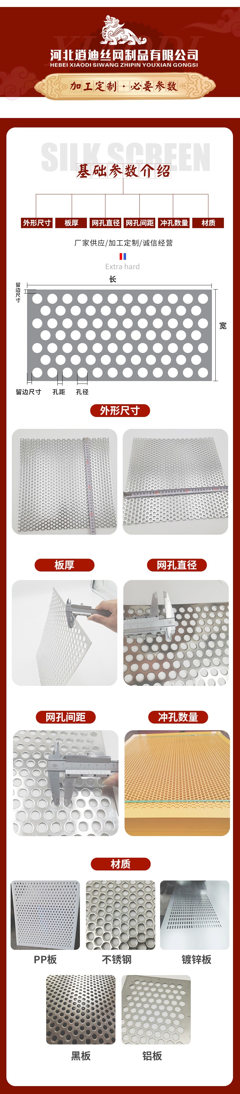- 沖孔板材質(zhì):常規(guī)用的就是鍍鋅板,1-3系鋁板,冷板,熱板,不銹鋼304,不銹鋼316,pp,重型沖孔板用16Mn錳板多