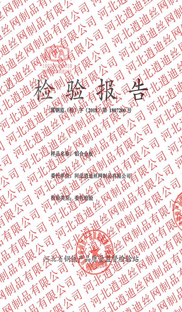 檢驗報告是最為普通常用的本公司有鋁合金鋼格柵和熱鍍鋅鋼格板檢驗報告,鋁合金為第三方河北省鋼鐵產品質量監督檢驗站做的冀鋼監(檢)字(2018)第1807200號 熱鍍鋅鋼格板檢驗報告為河北省絲網產品質量監督檢驗中心 No:B-0690C-A-2015-W0850 檢驗標準為YB/T 4001.1-2007 檢驗項目為:鍍鋅層厚度,扁鋼寬度,扁鋼厚度,橫桿中心間距,長度,寬度等
